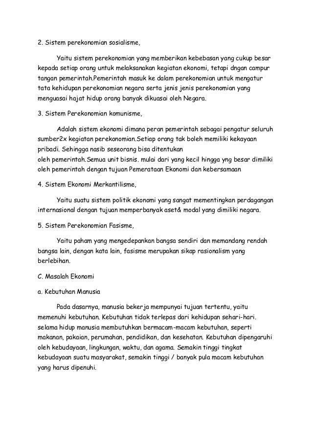 hal ini, kita membutuhkan sistem ekonomi yang tepat dan sesuai dengan kondisi