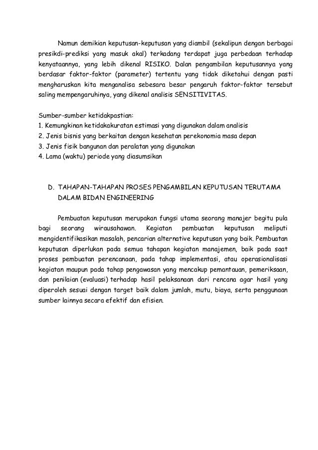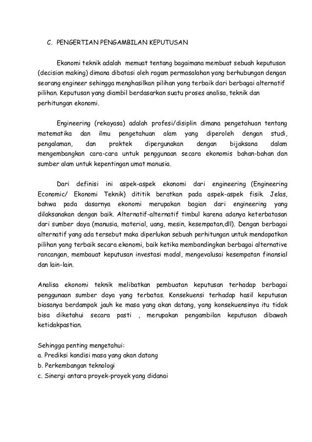 dalam masyarakat. Ekonomi teknik memberikan informasi tentang keputusan umum