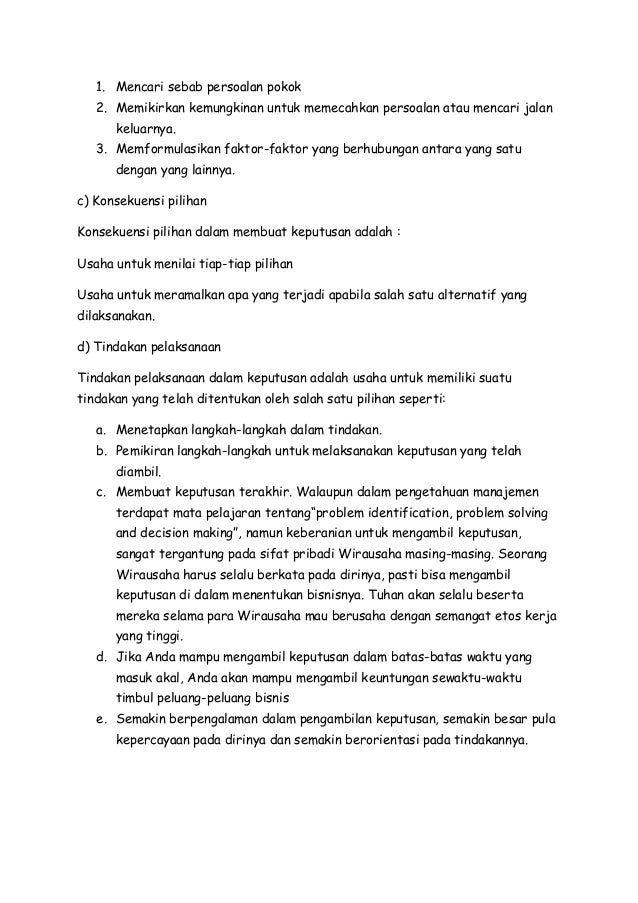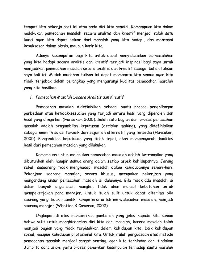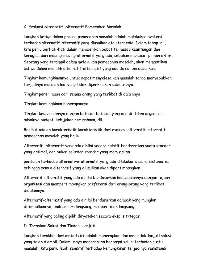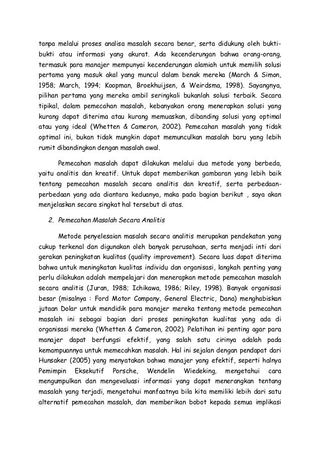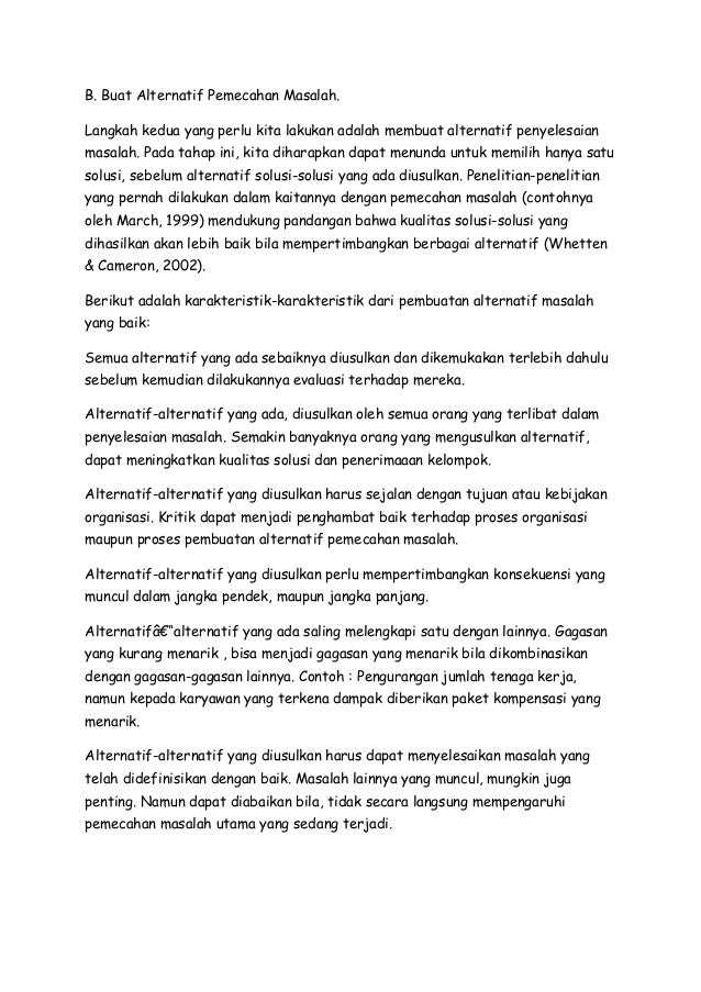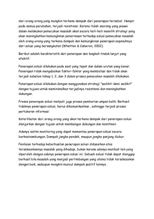 solusi yang bersangkutan (Whetten & Cameron, 2002). Berikut adalah