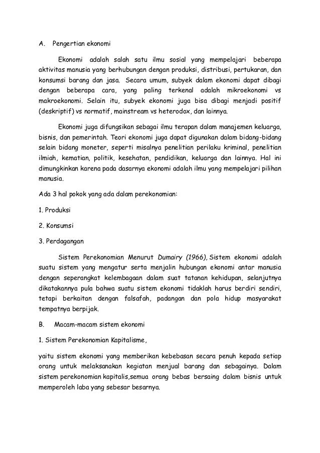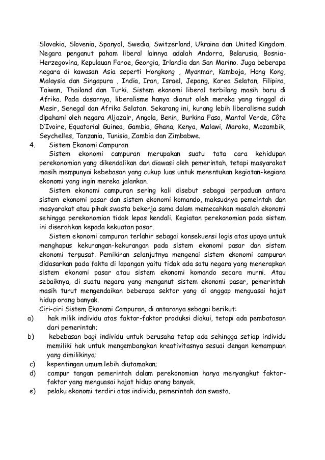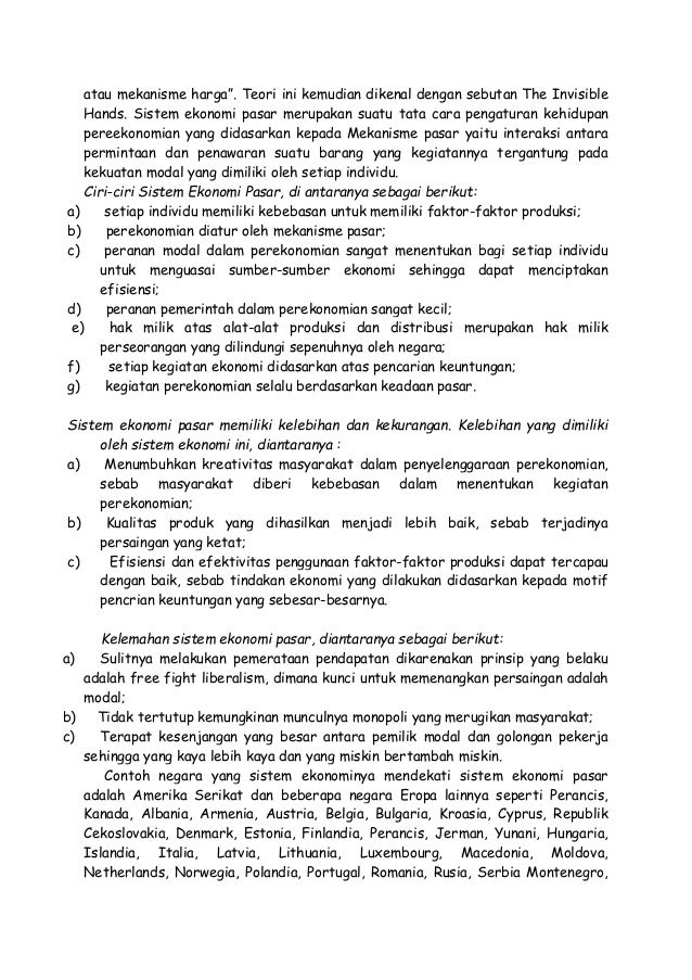terpusat atau komando, sistem ekonomi pasar dan sitem ekonomi campuran. 1.