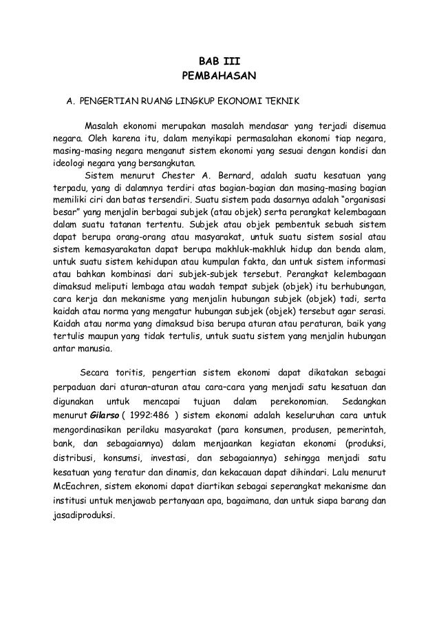 bidang teknik. Ilmu ekonomi tidak pernah lepas dari ilmu teknik, terutama dalam